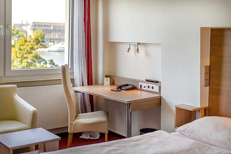 Individually furnished room offering a flat-screen TV, mini-bar and views of the Rhine.